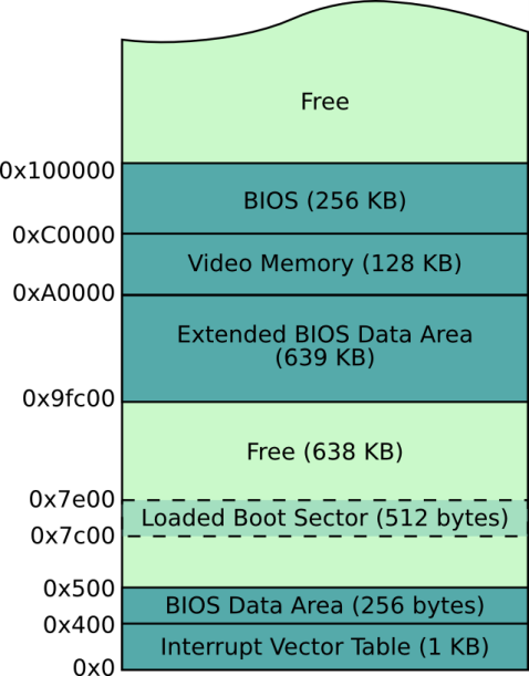 Cuando la BIOS carga el boot sector la RAM queda dispuesta del siguiente modo.