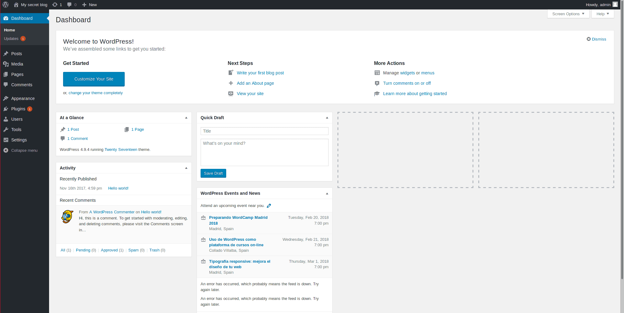 Parece que hay algo interesante en /secret/, con un curl ya vemos a simple vista que se trata de un Wordpress: